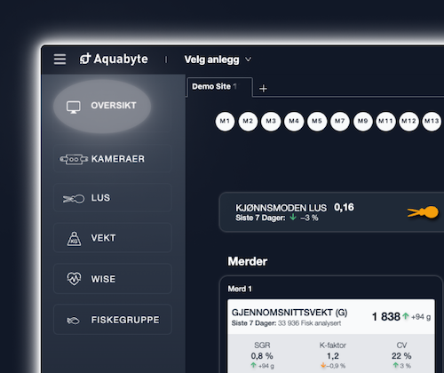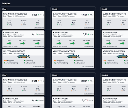 Vi har samlet den viktigste informasjonen fra alle merdene på ett sted. Dette betyr enklere og raskere tilgang til data for deg, og gir deg et oversiktlig verktøy som hjelper deg med å ta de riktige beslutningene til rett tidspunkt.