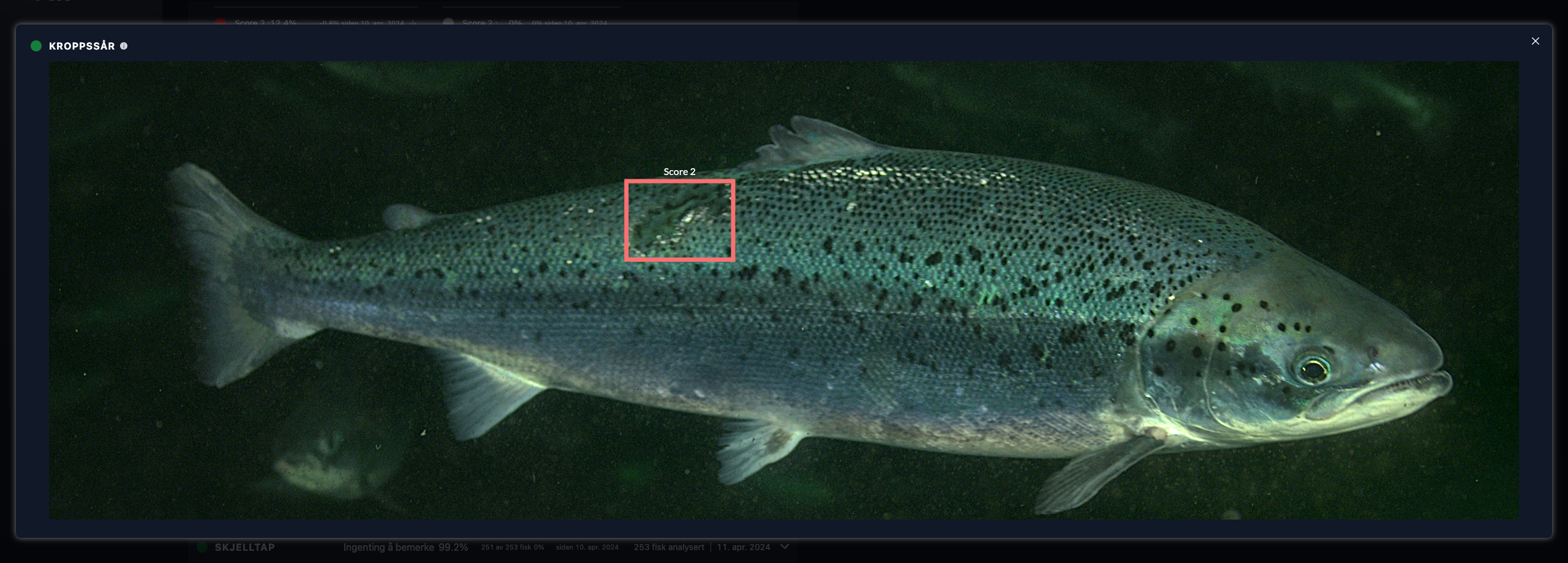 Aquabyte WISE Velferd er markedets eneste automatiske system for overvåking av fiskehelse fullt basert på Havforskningsinstituttets LAKSVEL-protokoll og velferdsindikatorer. Maskinlæring og kunstig intelligens overvåker totalt 14 ytre indikatorer, og med daglige oppdateringer på merdnivå gir Aquabyte WISE velferd kontinuerlig innsikt i fiskens faktiske helse og velferd.
